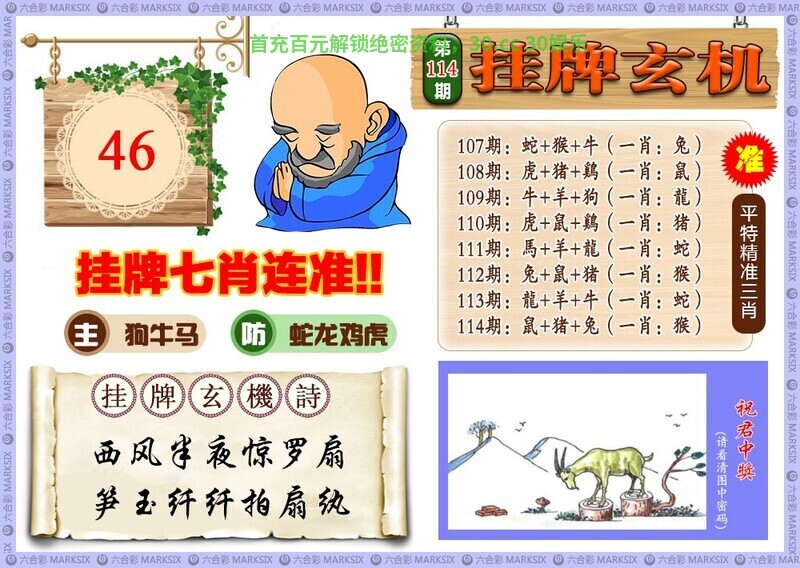 114期六肖 | 猴虎马羊兔鸡 | 發00中 |